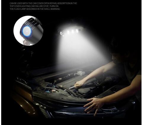 Strong magnet --- adsorbed on the top cover for lighting, used for car emergency stop in case of failure, turn on the flash lamp and adsorb on the shell for warning。