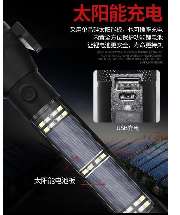 Solar charging --- Single crystal silicon solar panel, socket charging, built-in lithium battery with all-round protection function, makes lithium battery safer and longer life.