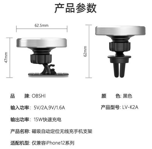 15W intelligent charging magnetic suction wireless charging bracket with built-in N50 magnet, compatible with iPhone 12 series.