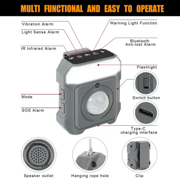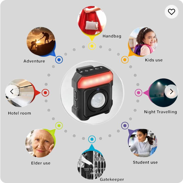 security SOS alarm, vibration/ light/ IR induction sensor, flashlight